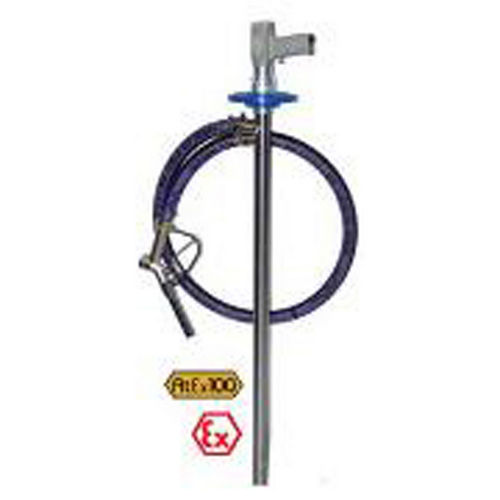 Взрывозащищенный пневмодвигатель в комплекте с насосоной трубкой, не накапливающей статическое электричество, позволяет использовать насос для безопасной работы с легковоспламеняющимися жидкостями.