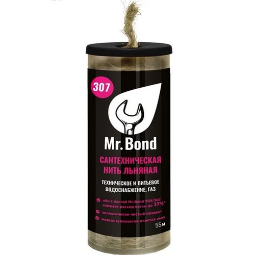 Нить льняная сантехническая Mr.Bond 307 представляет собой чистый натуральный продукт, изготовленный из тонкого, однородного, длинноволокнистого, чёсаного льна,получаемого из стебля льна. Изготовлен по ГОСТ Р 53549-2009. Лён является органическим материалом, подверженным гниению при контакте с влагой и воздухом, поэтому его следует пропитывать специальными средствами.