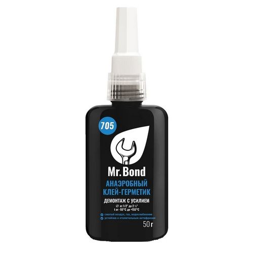 Анаэробный однокомпонентный клей-герметик MR.BOND 705 предназначен для герметизации металлических резьбовых соединений согласно стандарту DIN.